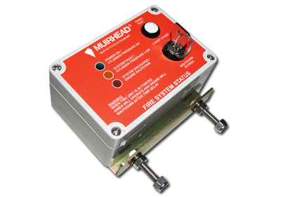 The shutdown pressure switch will trigger when the bottle has been discharged. It also has a key switch for override and push button for extended shutdown when activated.