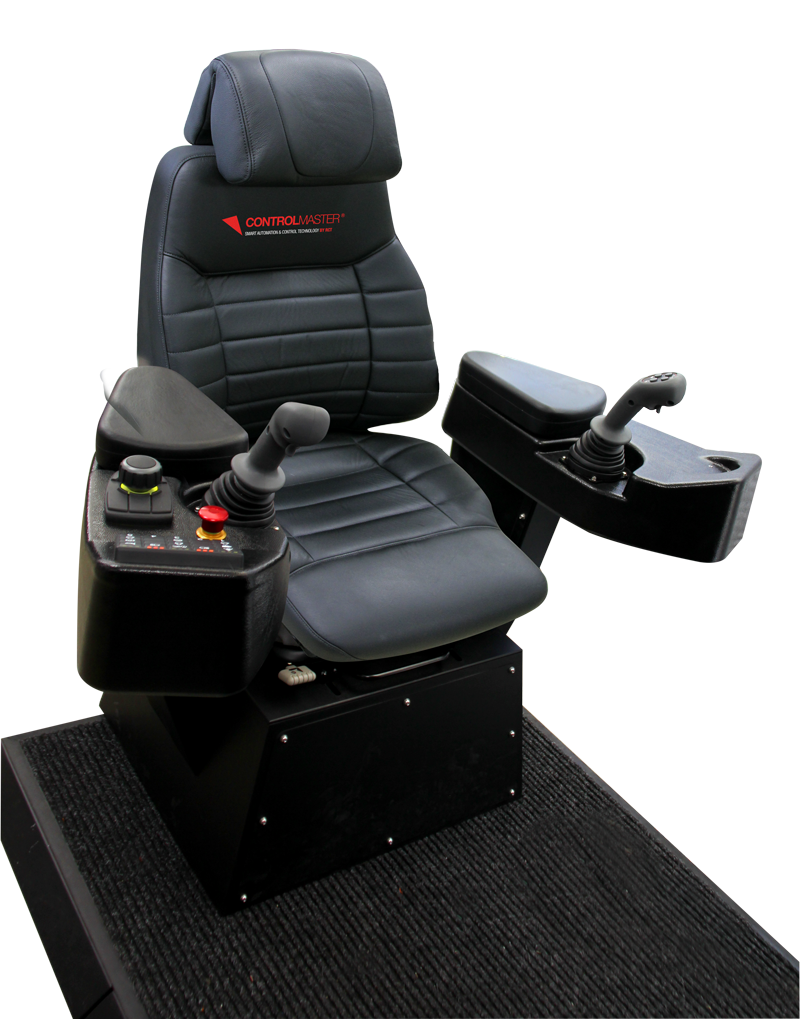 The location of the joysticks and armrests allow comfort and support for extended periods of operation.